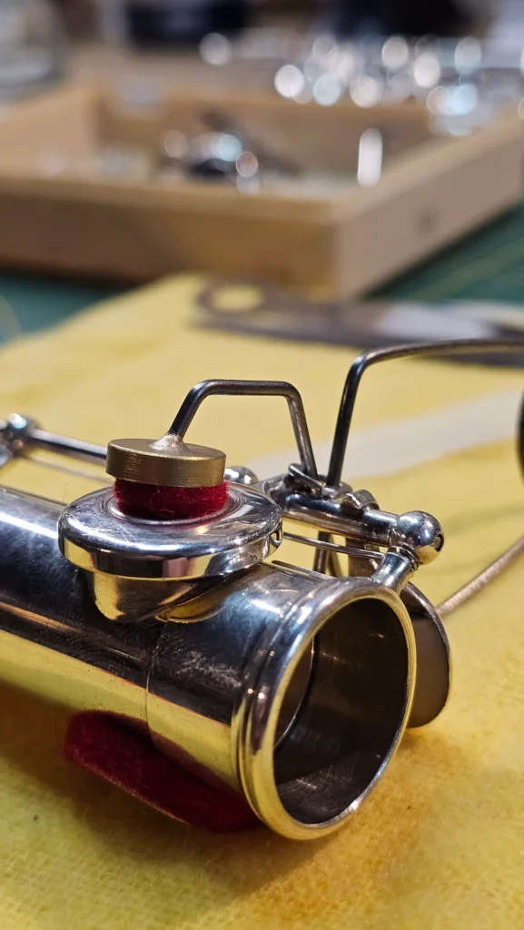 Contrôle de la couronne, repositionnement du bouchon pour optimiser l’émission et la justesse.
